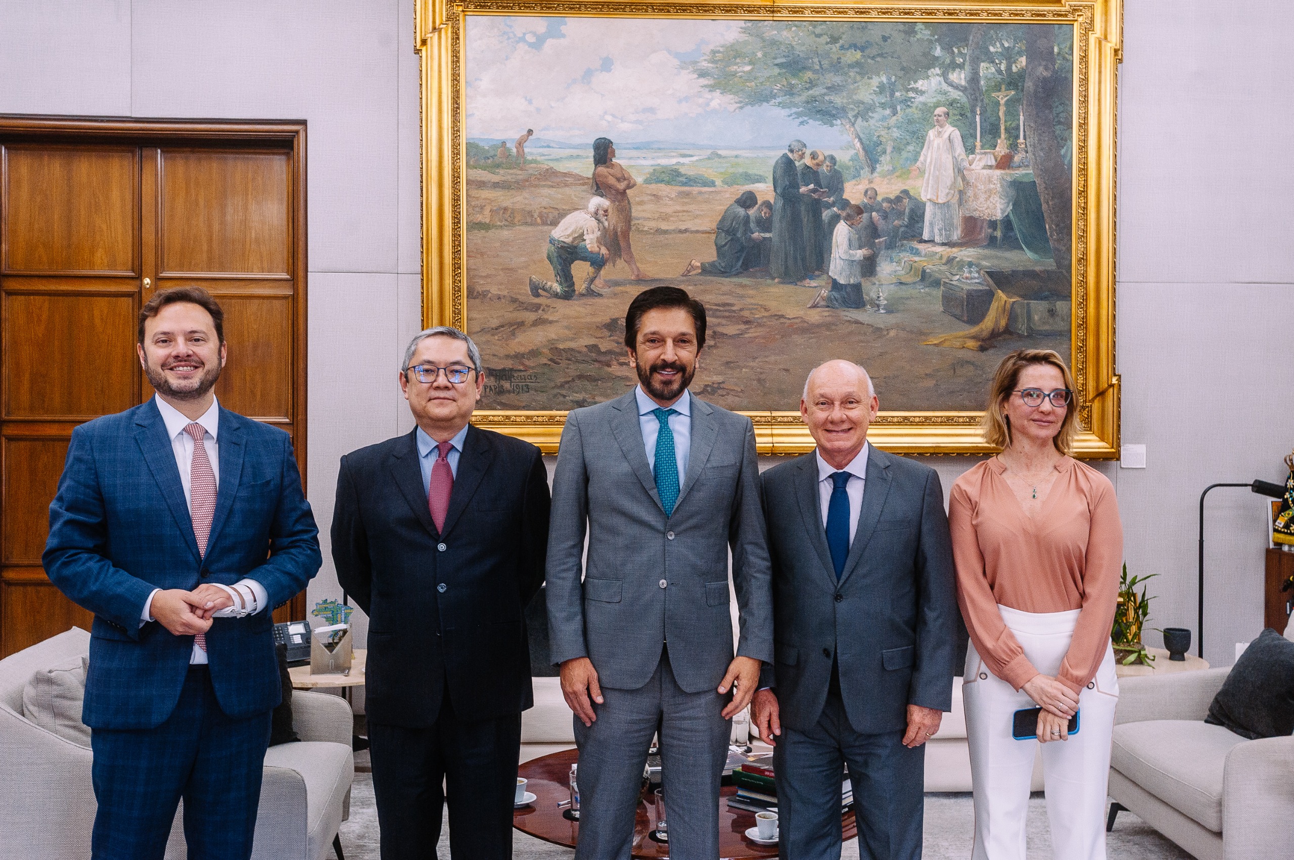 O prefeito Ricardo Nunes, acompanhado do secretário de Justiça, André Lemos Jorge, e da procuradora-geral do Município, Luciana Nardi, recebeu nesta sexta-feira (23/11), em visita de cortesia, o presidente eleito do Tribunal Regional Federal da 3ª Região (TRF3), desembargador federal Johonsom Di Salvo, e o atual presidente da Corte no biênio 2024–2025, desembargador Carlos Muta.
